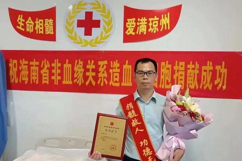 韓熠光成功捐獻造血干細胞。海南省紅十字會供圖