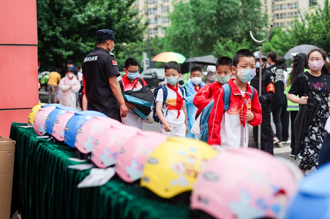“出門著急了”“忘戴了”“天熱了,戴著麻煩”“不好意思,下次一定戴好頭盔”……5月25日清晨,西安高新交警聯(lián)合高新一小共同行動(dòng),開展“一盔一帶”安全守護(hù)行動(dòng),在校門口教育、提醒騎行送孩子上學(xué)而未給孩子佩戴頭盔的家長重視交通出行安全?;顒?dòng)現(xiàn)場(chǎng),學(xué)校家委會(huì)還組織為沒有戴頭盔的孩子贈(zèng)送了頭盔。當(dāng)天,高新區(qū)30余所學(xué)校安全負(fù)責(zé)人全程觀摩了此次活動(dòng)。