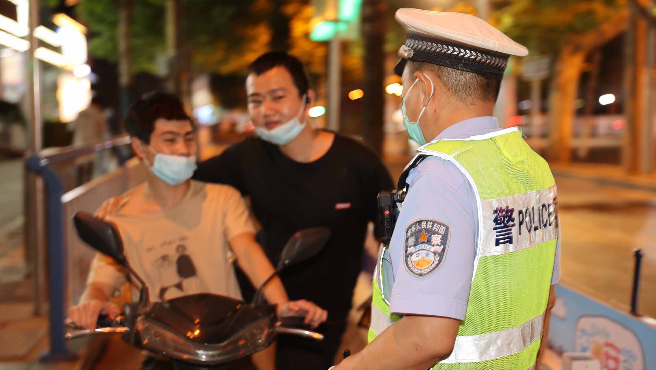 長安交警大隊(duì)民警在中山路青園街口勸導(dǎo)電動(dòng)車騎乘人員佩戴安全頭盔。 王浩天攝