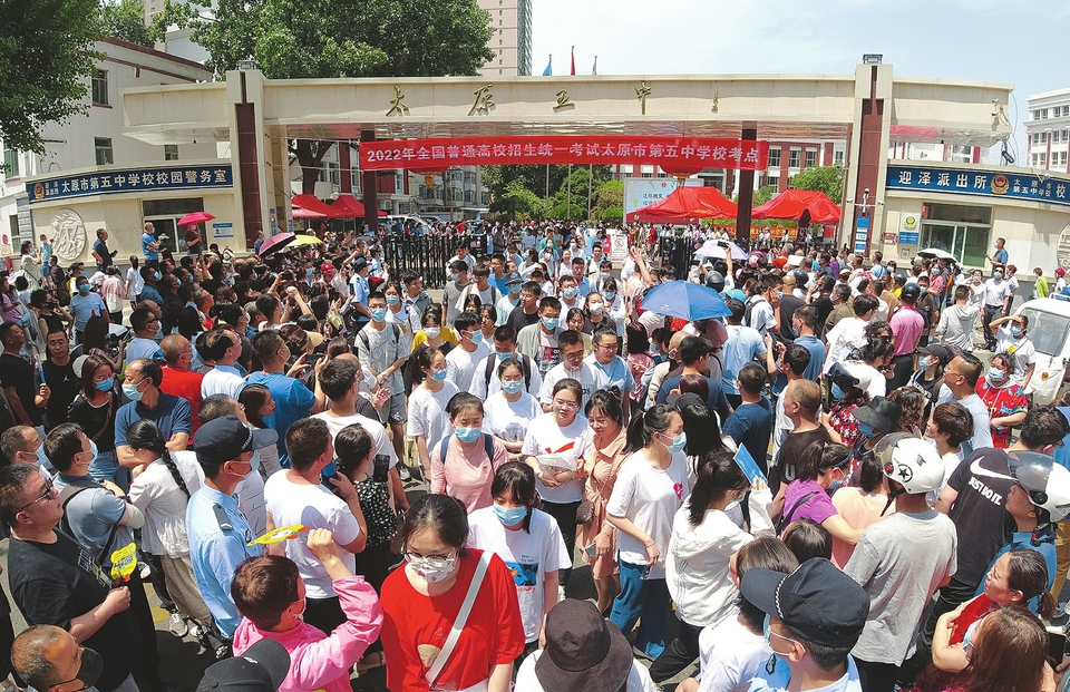 6月7日,太原五中考點,結(jié)束語文考試的考生們走出考場。記者李兆民攝