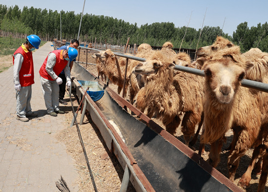 5月31日,國(guó)家電網(wǎng)冀北電力唐山“鋼鐵之魂”共產(chǎn)黨員服務(wù)隊(duì)隊(duì)員來到駱駝專業(yè)合作社檢查用電設(shè)備。 周宇翔攝
