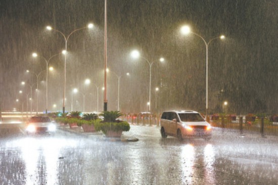 昨晚21:00,通州區(qū)遭遇暴雨天氣。據(jù)通州區(qū)氣象臺預計,宋莊鎮(zhèn)、潞城鎮(zhèn)、永順地區(qū)6小時降雨量達100毫米以上。本報記者 白繼開攝