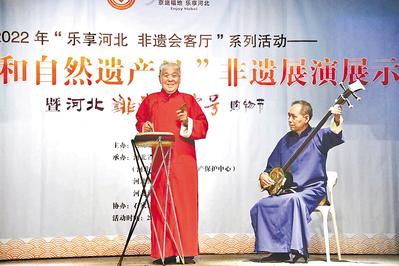 6月11日,“文化和自然遺產(chǎn)日”非遺展演展示暨河北非遺·老字號購物節(jié),在河北博物院舉辦。圖為京東大鼓展示表演。河北日報通訊員 王 建攝