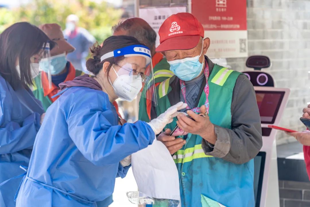 裴艷虹告訴記者,社區(qū)里老年人比較多,現(xiàn)場的工作人員需要特別有耐心,一點(diǎn)一點(diǎn)幫他們輸入信息。在太陽底下站了3個(gè)多小時(shí)的她,雖然很累,但看到有些80多歲的老人本可以在家等著上門檢測,卻還自己主動(dòng)下樓檢測,“他們是不愿給別人添麻煩,讓我很感動(dòng),我累點(diǎn)也值得?!迸崞G虹表示,自己是一名黨員,也曾是一名醫(yī)務(wù)工作者,守護(hù)好人民群眾的身體健康和生命安全,是義不容辭的責(zé)任。
