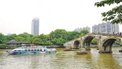 兩艘船2022年3月底進(jìn)廠,改造前后經(jīng)歷兩個多月,杭州水上發(fā)展集團(tuán)有限公司相關(guān)負(fù)責(zé)人說:“為了更好地發(fā)揮運河游船的文化特色優(yōu)勢,我們緊扣‘中國新時代、杭州新亞運’的目標(biāo)定位,精心改造升級了兩艘水上巴士。”水上巴士還是亞運特許零售點,游客在船上可購買到心儀的亞運紀(jì)念品,船舶運營過程中還會途經(jīng)亞運會吉祥物“宸宸”的原型——拱宸橋,兩岸的市民游客還可與亞運特色船、拱宸橋來個合影。