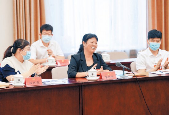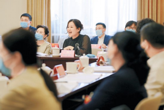 海淀代表團會議中,張海燕代表結合黨代會報告,就中小科技企業(yè)如何留住科技人才提出建議。 本報記者 賈同軍攝