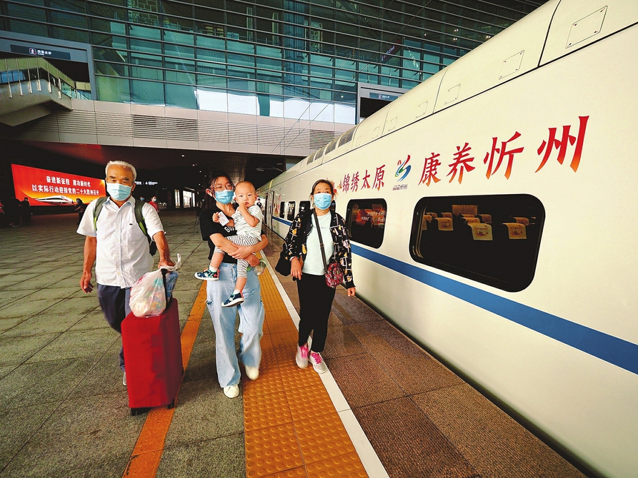 服務(wù)于“太忻號(hào)”的乘務(wù)員深感責(zé)任在肩?!拔覀兝密嚿碣N、海報(bào)等對(duì)車體進(jìn)行立體式包裝——雙塔寺、五臺(tái)山大白塔、忻州古城……動(dòng)車組似一道絢麗的彩虹把兩地的山山水水串聯(lián)起來,實(shí)現(xiàn)‘錦繡太原、康養(yǎng)忻州’旅游元素的共享。我們還為旅客提供忻州美食,做好服務(wù)員、宣傳員、導(dǎo)游員,讓旅客了解忻州文化、山西文化,打響‘太忻號(hào)’品牌,助推旅游業(yè)發(fā)展。”“太忻號(hào)”列車長王芳如是說。