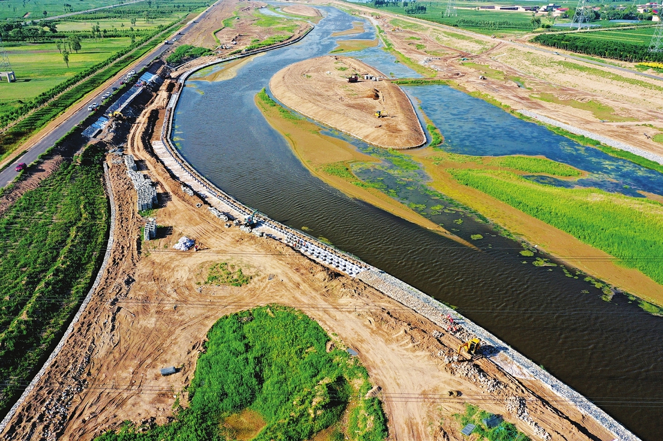 7月5日,正在建設中的汾河百公里中游示范區(qū)清徐段堤內工程,航拍鏡頭里,湖心島已呈現美麗的弧線。清徐段工程治理范圍北起汾河二壩,南至清徐文水縣界,長17.7公里,主要工程內容包括水利工程和景觀綠化工程,計劃今年9月底完工。承擔施工的中鐵十七局集團五公司項目部,正掀起為期45天的勞動競賽施工高潮。項目的建設,為推動汾河流域生態(tài)保護與修復,滿足兩岸防洪安全、改善河道環(huán)境,形成百公里水利長廊、生態(tài)長廊、文旅長廊,最終實現汾河風光美起來發(fā)揮積極作用。 (記者孫榮祥攝)