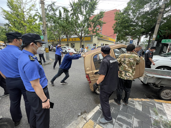 朝陽區(qū)和平街街道綜合行政執(zhí)法隊清理"僵尸車" 還"位"于民