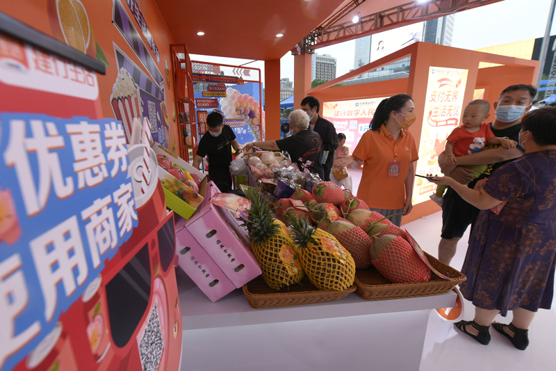 “618杭州拱墅消費嘉年華”活動上,消費者在選購水果。李忠攝