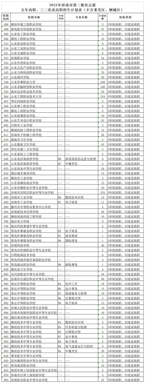 濟南市高中階段學(xué)校招錄第二批次志愿填報說明、各校剩余招生計劃(不含萊蕪區(qū)、鋼城區(qū))