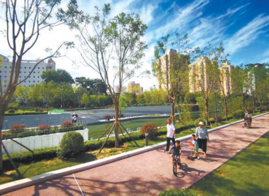 亮馬河國(guó)際風(fēng)情水岸的總面積80萬(wàn)平方米,其中可供市民休閑的公共空間就占了75%。有幼兒園的河段,建起了兒童攀爬墻,有老小區(qū)的河段,健身設(shè)施就格外多。濱河綠道從東直門(mén)外斜街一路蜿蜒至四環(huán)路,與朝陽(yáng)綠道銜接,橋下空間也打通了,沿河遛彎兒的人不必再穿行市政道路。