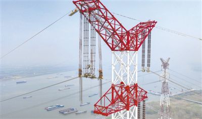 跨越長(zhǎng)江航道,“銀線渡江河”。