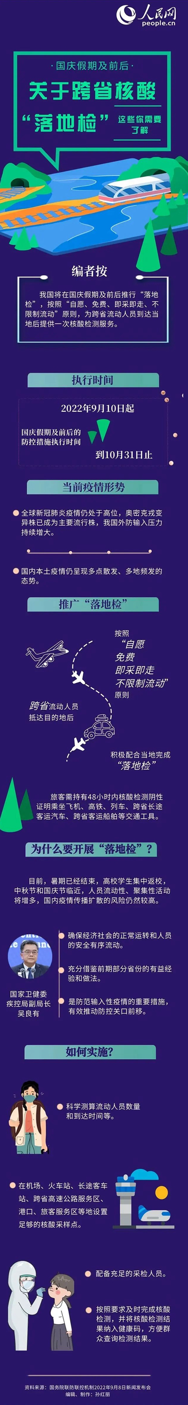 南京疾控提醒,請廣大市民繼續(xù)增強(qiáng)防范意識,非必要不去風(fēng)險地區(qū)和有本土病例疫情地區(qū)。倡導(dǎo)廣大市民國慶假期就地過節(jié)、市內(nèi)游,減少跨地市出行,盡量不出省。確需離寧的,要提前查詢了解目的地防控政策,并持48小時內(nèi)核酸檢測陰性證明乘坐飛機(jī)、火車、跨省長途客運(yùn)汽車等交通工具。近期有高中低風(fēng)險區(qū)旅居史人員、解除隔離后返回目的地的入境人員,以及省外來(返)寧人員,提前通過“來(返)寧人員信息申報系統(tǒng)”登記信息,主動向所在單位、社區(qū)或酒店進(jìn)行報備。省外來(返)寧人員抵寧后12小時內(nèi)在交通場站、公路服務(wù)點(diǎn)、社區(qū)采樣點(diǎn)等就近進(jìn)行核酸檢測(“落地檢”),3天內(nèi)再進(jìn)行一次核酸檢測(間隔大于24小時),期間不得參加聚集性活動或進(jìn)入文體娛樂類室內(nèi)密閉場所;省內(nèi)外市來(返)寧人員在抵寧后24小時內(nèi)進(jìn)行一次核酸檢測。