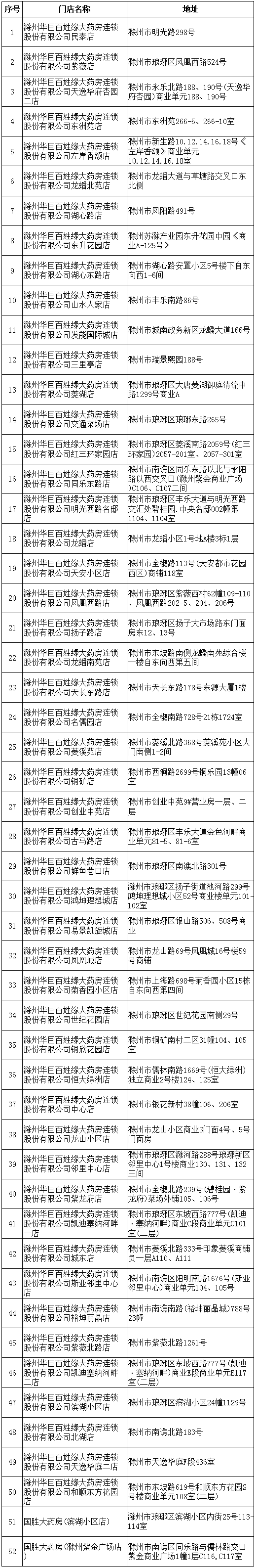 滁城52家藥店清單(滑動閱讀更多↓)