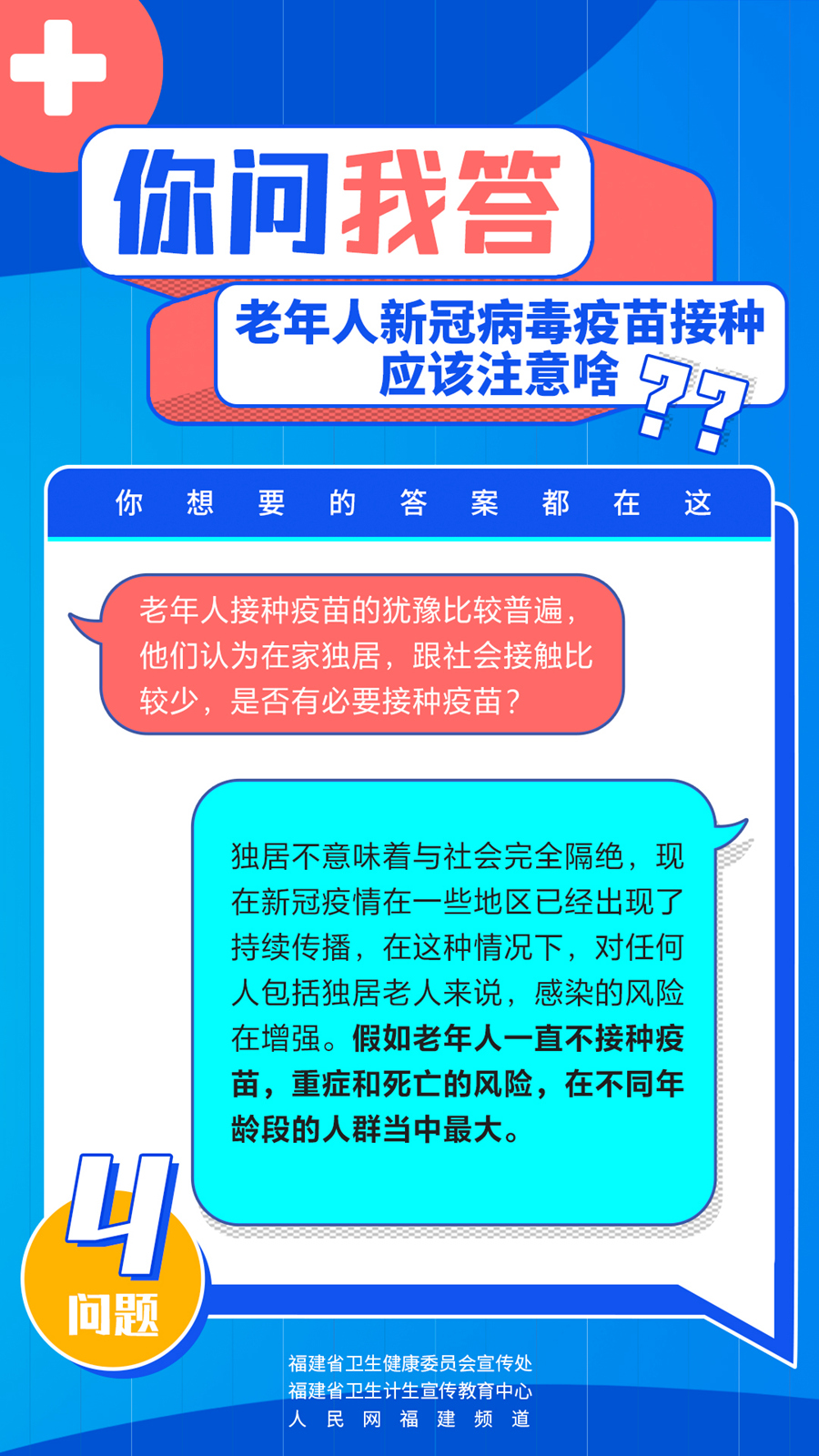老年人接種疫苗是否安全?會有更強烈的不良反應(yīng)嗎?哪些老年人群不適合接種新冠病毒疫苗?你問我答,快問快答!老年人新冠病毒疫苗接種究竟應(yīng)該注意啥?