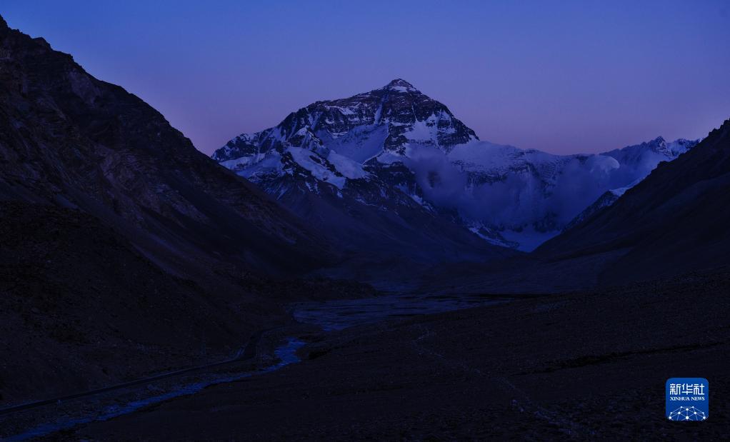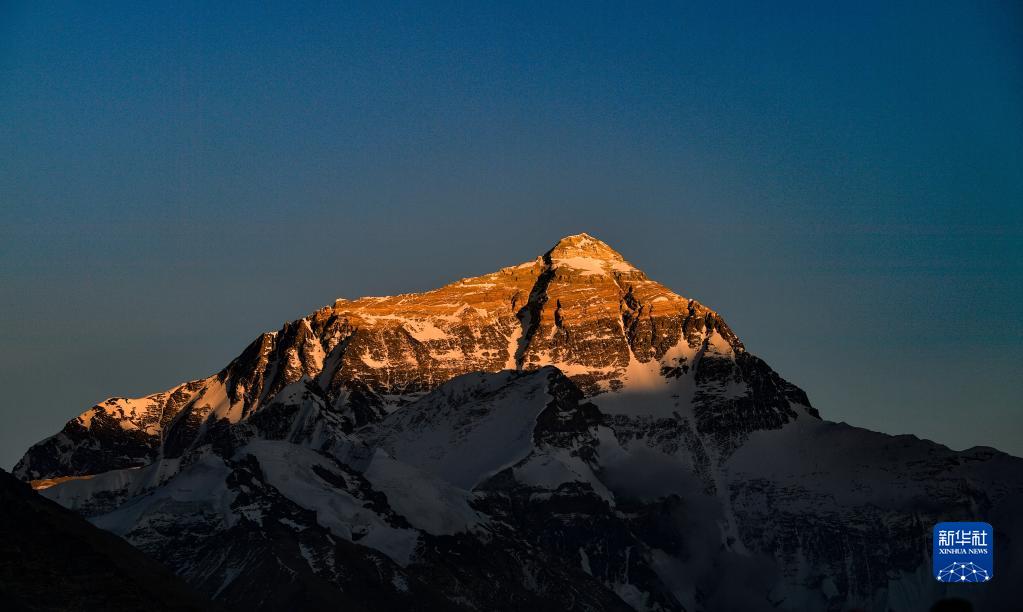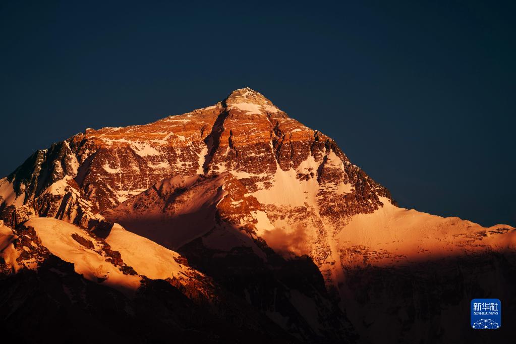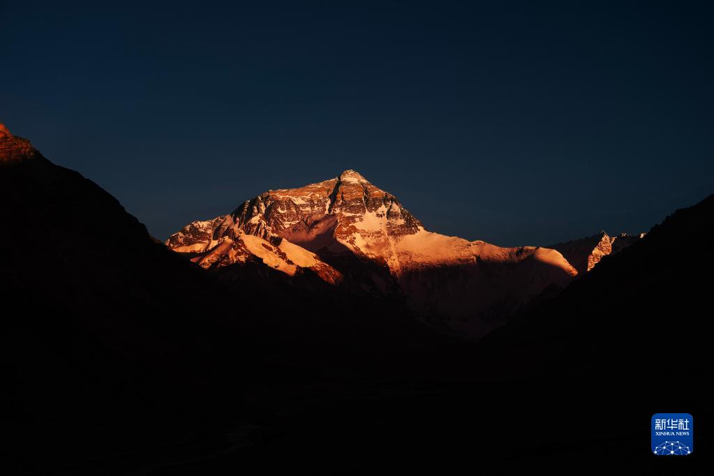 6月4日拍攝的太陽完全落山之后的珠峰。新華社記者 費茂華 攝