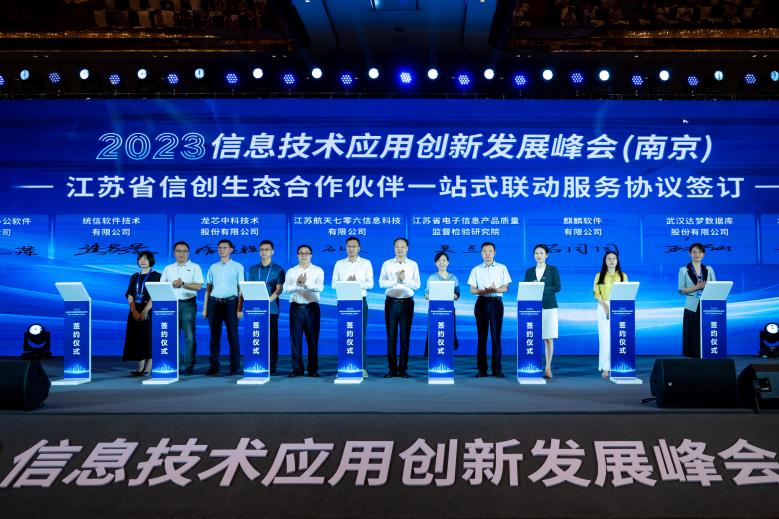 當(dāng)天,以江蘇七〇六所、江蘇電子質(zhì)檢院、龍芯中科、統(tǒng)信軟件、麒麟軟件、中通服為代表的15家單位簽訂了江蘇省信創(chuàng)生態(tài)合作伙伴一站式聯(lián)動(dòng)服務(wù)協(xié)議,旨在深化互惠互利、可持續(xù)發(fā)展的戰(zhàn)略合作伙伴關(guān)系,共同構(gòu)建軟硬件協(xié)同發(fā)展的信創(chuàng)生態(tài)圈。