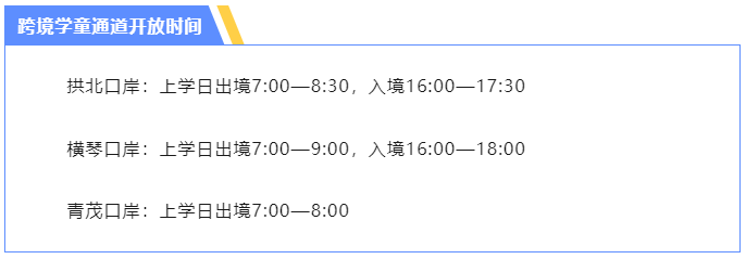 跨境學(xué)童通道開放時(shí)間。圖片來源:珠海邊檢總站官方微信截圖