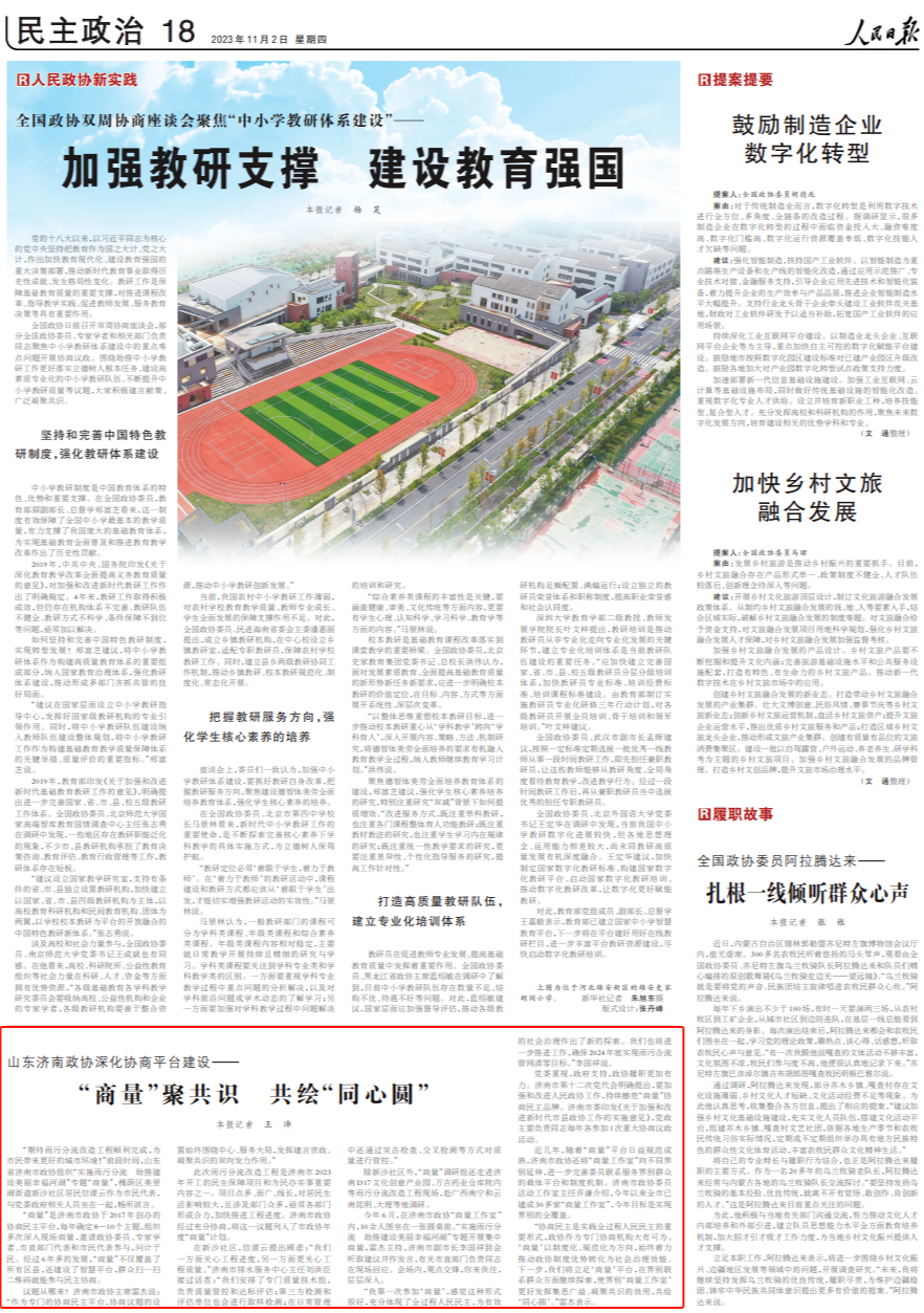 人民日報點贊濟南政協(xié)深化協(xié)商平臺建設:“商量”聚共識 共繪“同心圓”