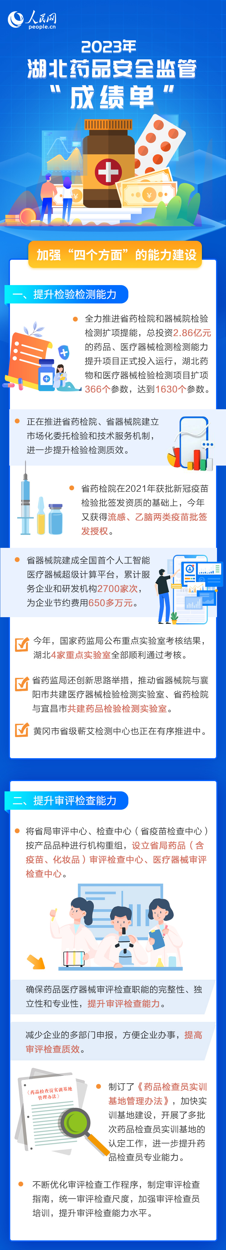 湖北在全國藥監(jiān)系統(tǒng)率先推出“即報即辦”行政審批事項清單38項。截至目前,藥品、醫(yī)療器械、化妝品持證企業(yè)63657家,較去年新增8401家。湖北通過仿制藥一致性評價企業(yè)達到29家,涉及149個品種,居全國前列。2023年以來,新增國家1類新藥、兒童罕見病藥、首仿藥等產品多達65個。
