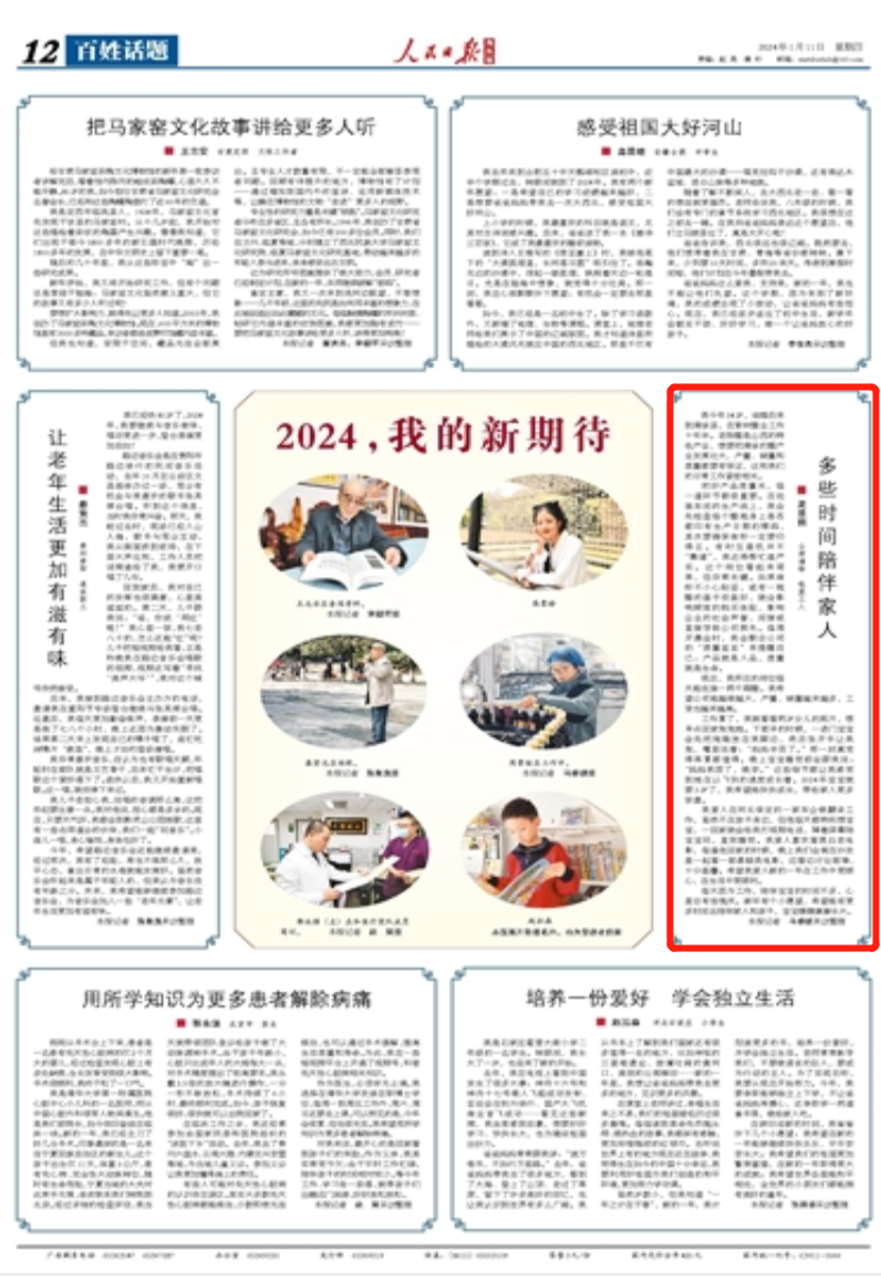對我來說,最開心的是回家看到孩子們的笑臉。作為父親,我其實常覺虧欠:由于平時工作忙碌,陪伴孩子的時間相對較少。等今年工作、學(xué)習(xí)告一段落,就帶孩子們出趟遠(yuǎn)門旅游,好好放松放松。