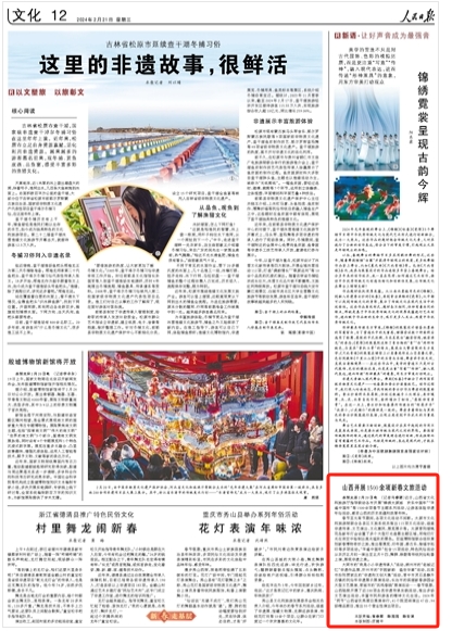 本報太原2月20日電 (記者馬睿姍)近日,山西省文化和旅游廳指導聯(lián)動各市開展“錦繡太原城 歡樂中國年”“平遙中國年”等1500余項春節(jié)主題系列活動,讓游客體驗非遺年俗活動,感受山西的歷史底蘊和濃厚年味。