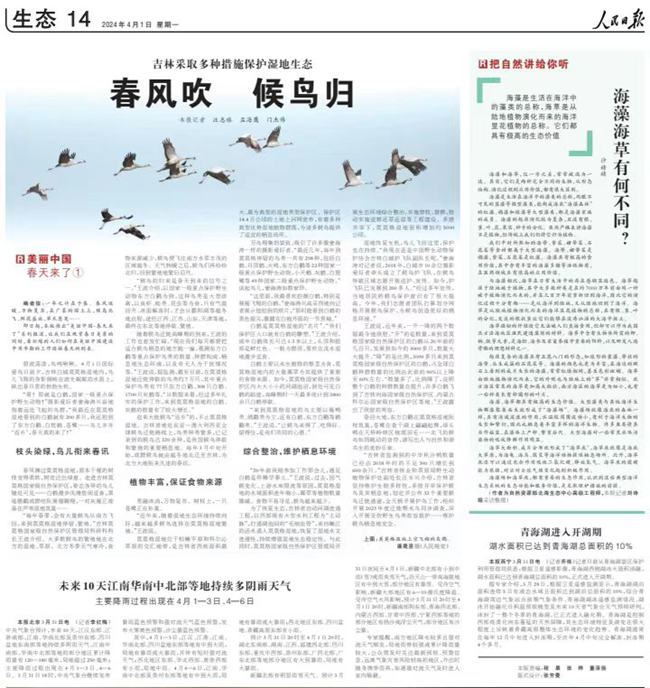 人民日?qǐng)?bào)關(guān)注吉林濕地生態(tài):春風(fēng)吹 候鳥(niǎo)歸