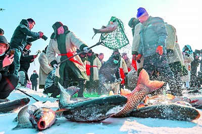 每年1月,博斯騰湖都會(huì)舉行冬捕活動(dòng),這也是當(dāng)?shù)貧v史悠久的冰雪民俗文化活動(dòng)之一。經(jīng)過(guò)春天的繁殖,夏天的成長(zhǎng),秋天的肥碩,冬天就成了最好的捕魚(yú)時(shí)節(jié)。正所謂“三季靠一冬”,每年這個(gè)時(shí)節(jié),冬捕就是這里最熱鬧、最歡樂(lè)的事兒。