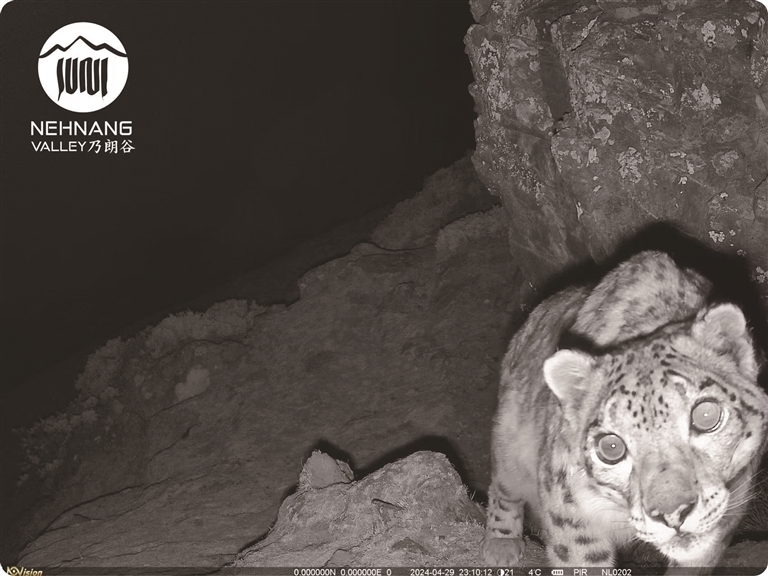 在南巴村監(jiān)督主任頓珠次仁的帶領(lǐng)下,記者一行抵達(dá)了第一戶牧民的夏季牧場(chǎng)臨時(shí)住所。乃朗谷的海拔在3500米以上,這里的生境主要包括高山祼巖、高山草甸、高山灌木叢以及山地針葉林緣等四種類型。對(duì)于雪豹而言,懸崖峭壁和山脊線是它們休息與隱蔽的絕佳場(chǎng)所。它們通常會(huì)利用巖石地形和灌木叢植被進(jìn)行隱蔽,巧妙地跟蹤獵物,并采取伏擊或偷襲的方式進(jìn)行捕獵。