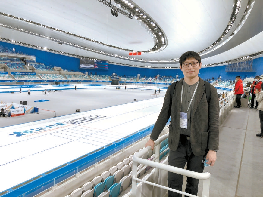 2021年4月“相約北京”冬奧測(cè)試賽期間,沈興華到國(guó)家速滑館學(xué)習(xí)觀摩冬奧會(huì)籌備工作。