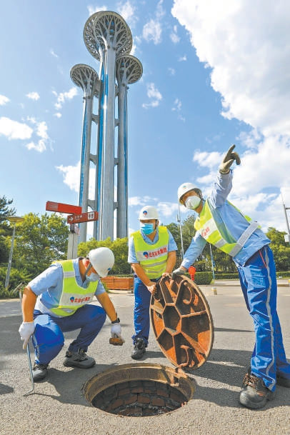 汛期到來(lái)前,北京排水集團(tuán)工作人員進(jìn)行管線清掏作業(yè)。 北京排水集團(tuán)供圖