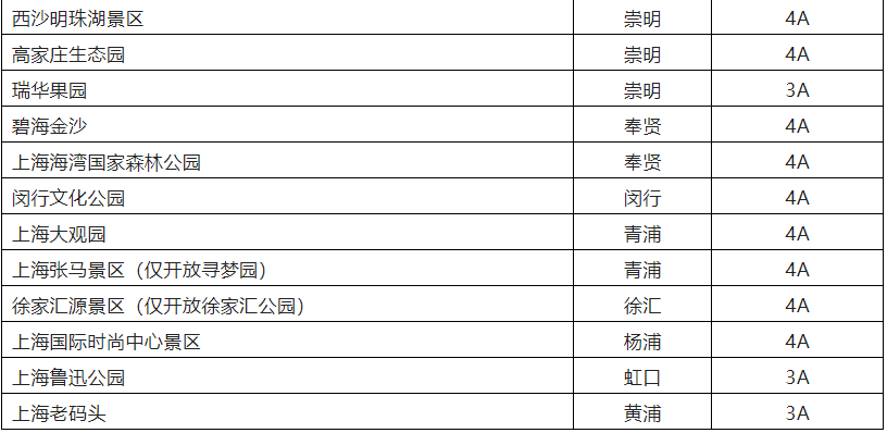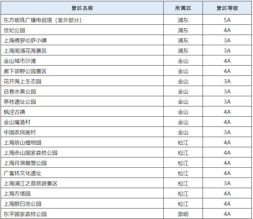 恢復(fù)開放的32家A級(jí)旅游景區(qū)(圖片來自上海市文旅局,央廣網(wǎng)發(fā))