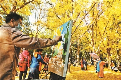 藝術(shù)家進(jìn)園林,“落葉拼金秋”,在參觀完地壇公園內(nèi)標(biāo)志性的點位后,藝術(shù)家們帶著自己的作畫工具,選取心儀的一角,用畫筆勾勒心中最美地壇。園內(nèi),還有群眾自發(fā)的樂隊、舞蹈團(tuán)等藝術(shù)團(tuán)體及攝影愛好者,用自己獨(dú)特的方式“記錄”地壇秋景,讓古老地壇充分沾染“文藝范兒”。