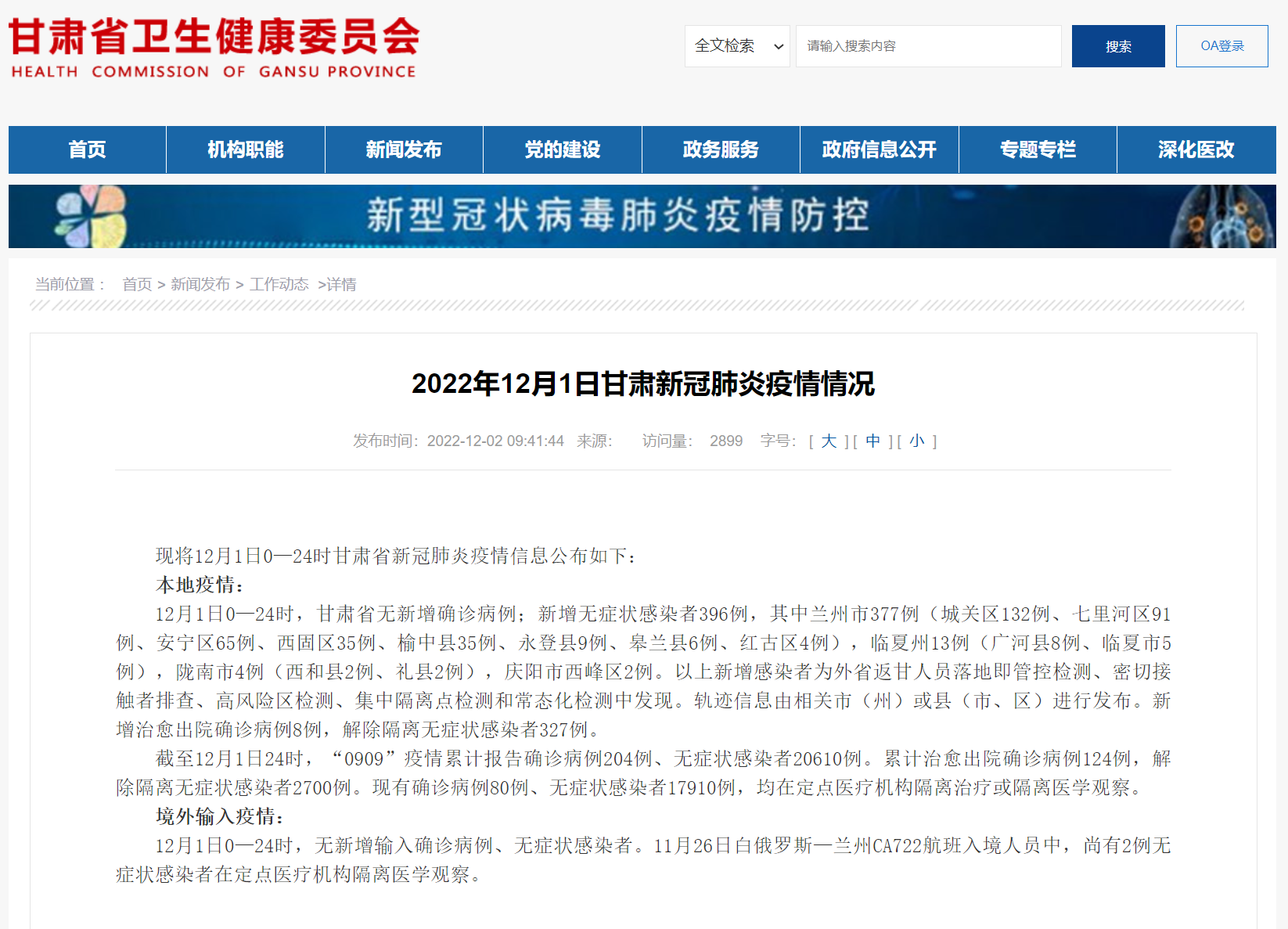 甘肅省衛(wèi)健委官網截圖