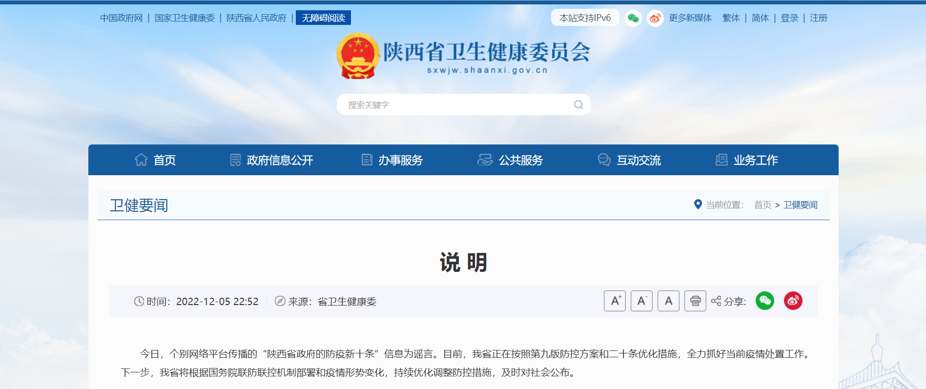 官方辟謠:網(wǎng)傳“陜西省政府的防疫新十條”信息為謠言