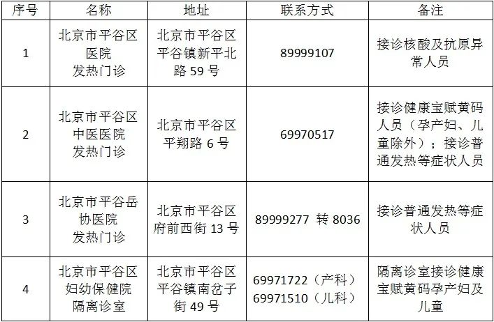平谷區(qū)將根據(jù)疫情形勢變化及疫情防控相關工作要求,適時對轄區(qū)發(fā)熱門診進行動態(tài)調整。