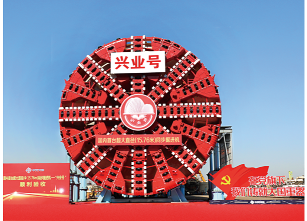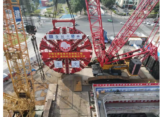 珠海興業(yè)快線隧道工程是未來(lái)連通港珠澳大橋和深中通道,把珠海市打造成為“粵港澳交通樞紐”的重要工程。盾構(gòu)隧道長(zhǎng)度僅1740米,但地質(zhì)情況極為復(fù)雜,其中:硬巖段占比超過(guò)70%,被稱“地質(zhì)博物館”,且為首個(gè)國(guó)內(nèi)直徑最大雙層疊落盾構(gòu)工程,雙層疊落長(zhǎng)約604米,盾構(gòu)法施工面臨不少世界級(jí)難題。為順利完成這項(xiàng)重大工程,中交天和立足自主研發(fā),著眼科技創(chuàng)新,為適應(yīng)在硬巖地質(zhì)中提高掘進(jìn)速度,實(shí)現(xiàn)隧道掘進(jìn)和管片拼裝同步施工,成功研制中國(guó)首臺(tái)超大直徑同步掘進(jìn)機(jī)“興業(yè)號(hào)”。該掘進(jìn)機(jī)國(guó)產(chǎn)化率達(dá)98%以上、刀盤直徑15.76米,全長(zhǎng)超130米,攻克了許多難以想象的世界級(jí)難題。