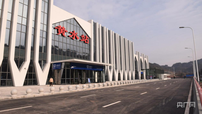 黃水站原名沙子站,坐落在滬蓉鐵路大通道上,是一個四等站。該站此前為越行站,無站房、站臺等客運設(shè)施,無法辦理客運業(yè)務(wù)。2019年7月,該站開建增設(shè)客運設(shè)施項目,新建站房6073平方米、鐵路橋梁7座、站臺橋4座、島式站臺和側(cè)式站臺各1座,新鋪軌道4.8公里。這是全國首座大坡度高鐵既有線越行站增設(shè)客運設(shè)施工程,也是中國鐵路成都局集團有限公司管內(nèi)的首例高鐵站改工程。