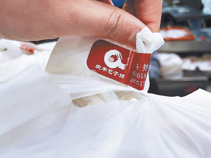 傍晚6時(shí)左右,廣渠門內(nèi)地鐵口附近的慶豐包子鋪訂單漸漸多了起來(lái)。記者現(xiàn)場(chǎng)看到,服務(wù)員把蒸好的包子和其它菜品裝進(jìn)外賣盒后,馬上用專屬的外賣袋和封簽將食品“封死”。一眼望去,桌上七八份外賣都貼著帶有“慶豐包子鋪”標(biāo)志的專屬紅色封簽。