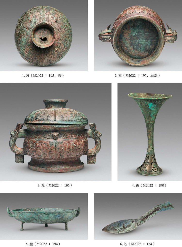 此次公布考古資料的墓葬為M2022墓,該墓葬墓室較大,且東側(cè)對應陪葬一座較大的車馬坑。墓內(nèi)隨葬器物種類豐富,數(shù)量較多,包括青銅器1045件(套)、玉器60件(套),其中青銅禮、樂器16件,且發(fā)現(xiàn)殉人和殉狗,顯示墓主人具有較高的社會地位。