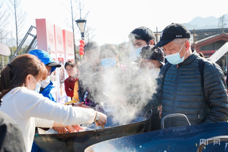 市民現(xiàn)場品嘗熱氣騰騰的大鍋燉魚(央廣網(wǎng)發(fā) 活動(dòng)主辦方供圖)
