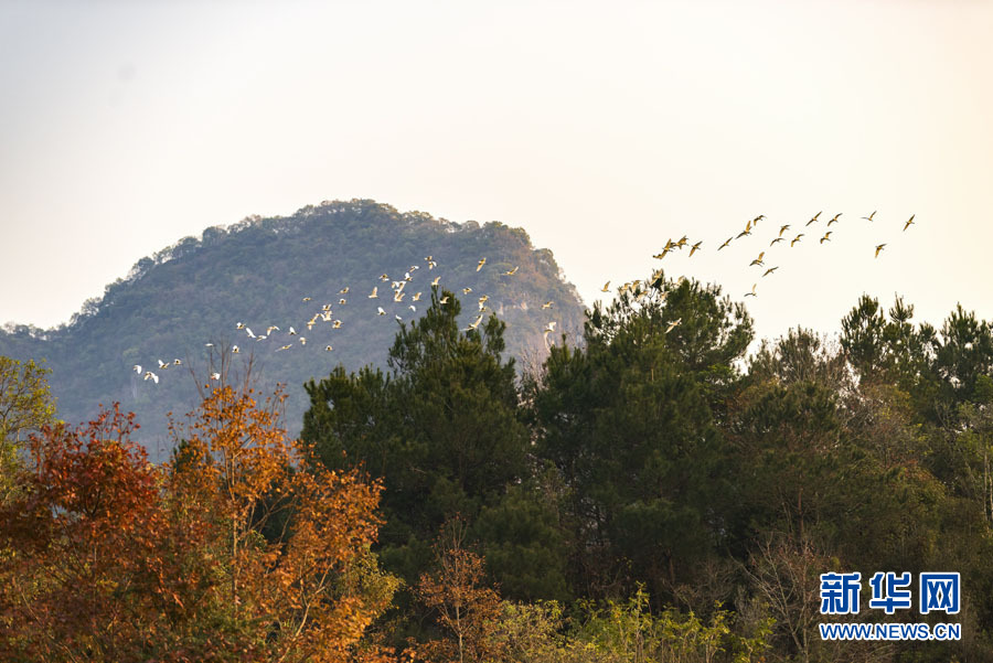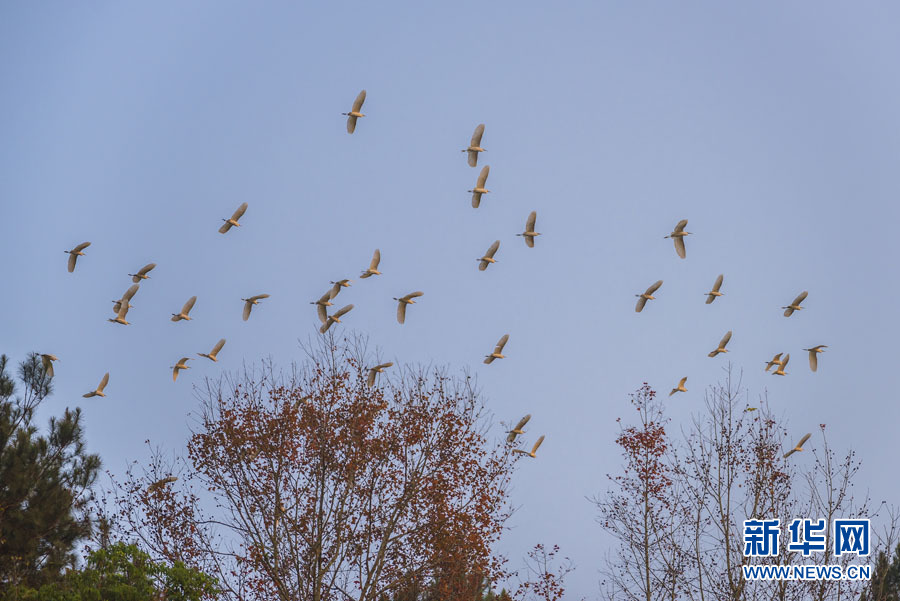 日前,在廣西百色市德??h城關鎮(zhèn)西讀村那西屯的田野上,成群白鷺或在覓食嬉戲、或在空中飛舞、或在樹梢停歇,與青山、綠水、紅楓構(gòu)成一幅美麗的自然生態(tài)畫卷。