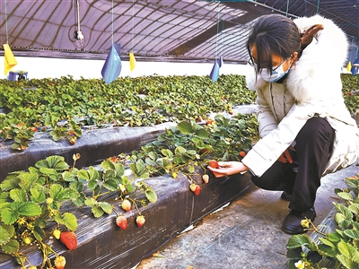 走進位于平谷區(qū)峪口鎮(zhèn)南營村的設施農(nóng)業(yè)智慧云服務系統(tǒng)產(chǎn)業(yè)化“博士”農(nóng)場,日光溫室里春意濃濃,空氣中清甜的香氣撲鼻而來。三九天的北京,這里一派生機盎然。一月正是草莓豐收的季節(jié),南營村“博士”農(nóng)場的草莓也迎來了豐收季。與其他地區(qū)的草莓種植不同,依托于中國農(nóng)業(yè)大學智慧農(nóng)業(yè)研究中心科研團隊建設的“博士”農(nóng)場,顆顆草莓都被打上了智慧的印記。