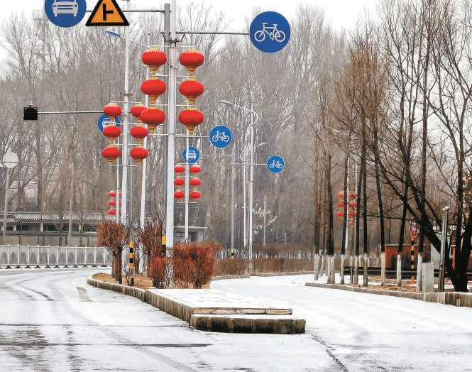昨天午后,延慶區(qū)雪花紛紛揚揚,大街鋪上了薄薄一層白雪。本報記者 吳鏑攝