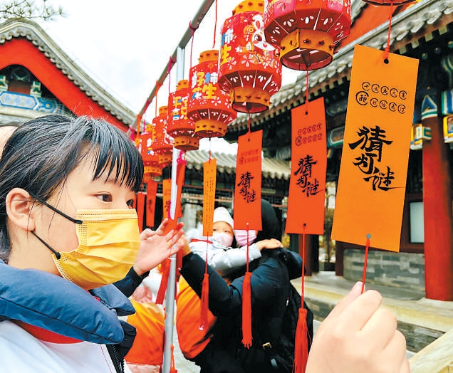 頤和園為游客準(zhǔn)備了猜燈謎活動(dòng)。
