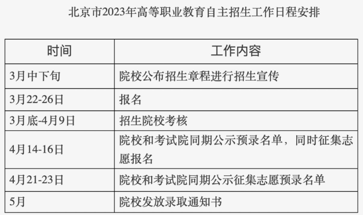 北京市2023年高等職業(yè)教育自主招生將于3月22日啟動(dòng)報(bào)名。已參加本市2023年高考報(bào)名的統(tǒng)考考生和單考考生均可報(bào)名參加,每名考生限報(bào)一所院校。