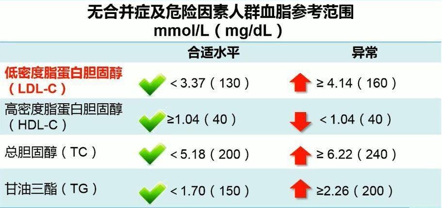 總膽固醇是指血液中膽固醇的總含量,該指標(biāo)升高則表示容易形成動(dòng)脈粥樣硬化斑塊,導(dǎo)致心腦血管疾病。高密度脂蛋白膽固醇,能將沉積在血管中的膽固醇運(yùn)回肝臟,變成膽汁隨糞便排出體外,可以降低患心臟病等心血管疾病的風(fēng)險(xiǎn),因而也被稱為血管的“清道夫”,數(shù)值越高越好。低密度脂蛋白膽固醇,被認(rèn)為是動(dòng)脈粥樣硬化發(fā)生和發(fā)展的“罪魁禍?zhǔn)住?,它?fù)責(zé)將肝臟中的膽固醇轉(zhuǎn)運(yùn)到身體的各個(gè)組織細(xì)胞,但卻不負(fù)責(zé)將送出的膽固醇收回,這個(gè)指標(biāo)越高,發(fā)生心腦血管疾病的風(fēng)險(xiǎn)就越大。甘油三酯是人體脂肪的組成部分,可以為人體儲(chǔ)存和供給能量。甘油三酯升高,往往與飲食有關(guān),甘油三酯指標(biāo)升高嚴(yán)重時(shí)會(huì)誘發(fā)急性胰腺炎。