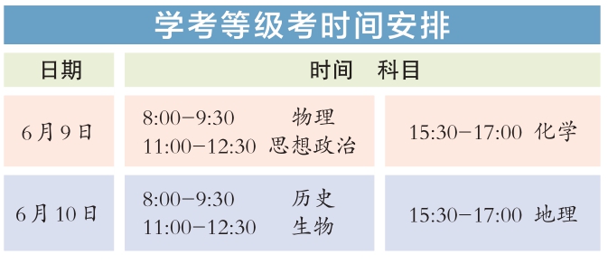 今年統(tǒng)一高考考試科目為語文、數(shù)學(xué)、外語3門,滿分均為150分。其中,英語聽說考試滿分50分,其他外語(非英語)聽力考試滿分30分,兩次聽說(聽力)考試的最高成績與其他部分試題成績一同組成外語科目成績計入高考總分。學(xué)考等級考科目為思想政治、歷史、地理、物理、化學(xué)、生物6門,由考生自主選擇3門參加考試,每科目滿分100分。參加本科招生錄取的考生總成績由3門統(tǒng)一高考成績和考生選考的3門學(xué)考等級考成績構(gòu)成,總成績滿分值為750分。