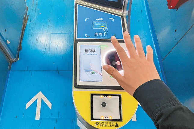 不用刷卡、不用刷碼,只需伸出手掌,就能刷開地鐵閘機?!八⒄啤背塑囆履J饺缃裨诘罔F大興機場線實現(xiàn)了。記者10日在現(xiàn)場看到,錄入掌紋、實名信息授權(quán)并開通微信刷掌支付后,乘客只需要找到帶有圓環(huán)標志的刷掌閘機,將掌心面對圓環(huán)內(nèi)的識別區(qū)進行識別,閘機便會自動打開。本報記者 李博文 鄧偉攝